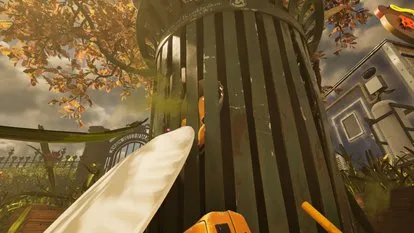 如果你骑着越野车,要跳到外围的支持架上,然后再转身跳到垃圾桶顶部。如果徒步前行,Willow可以爬上电池或布料到达顶部。