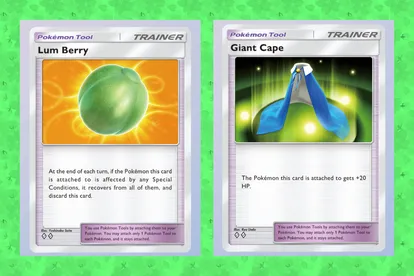 截至目前,共有三种工具卡:巨型斗篷、岩石头盔和雷丘莓。这些卡片并不算超级稀有或强力宝可梦,但学习如何运用它们绝对值得一试。