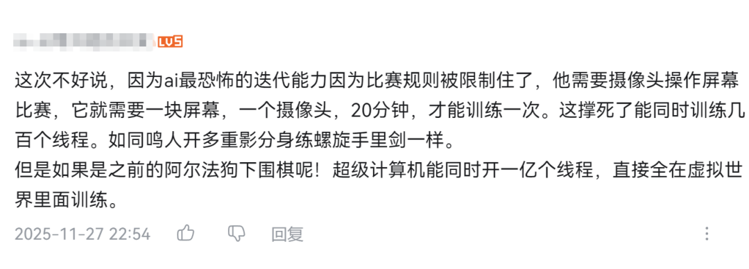 像是在马斯克下战书的那个帖子下方,不少评论都认为AI很难赢下这场对决,北美LOL的元老级选手彭亦亮,就拿“剃光头”这事作押,表示AI绝对不可能赢。